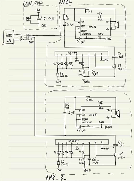 After i made the amplifier circuit sculpture from the circuit design i did then i tested the amplifier with signal generater and oscilloscope. amp is working perfectly. Then i was very confident to make the amplifier circuit sculpture of the crossover type of speaker. In order to display at the show i made a control box for all sets of speakers. It combine the power supply and the signal source, including a bluetooth reciever for users to connect to ther devoce and play music.