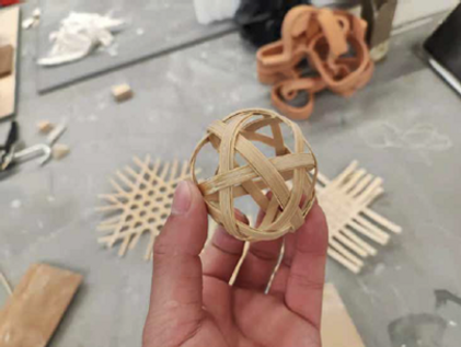 I also tried to weave clay strips using the same technique of bamboo weaving. I made clay slap with the roller then cut it into strips. During this whole process, I realizewaeving clay is very hard because there are a lot of hard turns when the clay strips overlap each other and in order to work with clay strips thin as this I need to be very carefull and the clay also need to be a big hard. So when these two factors add up the clay strips breaks at the overlapping point and it doesn't stick to each other without any slip. I learn that it's not always ideal to apply same technique to different materials when trying to create something new. Experiment is the most important part.
